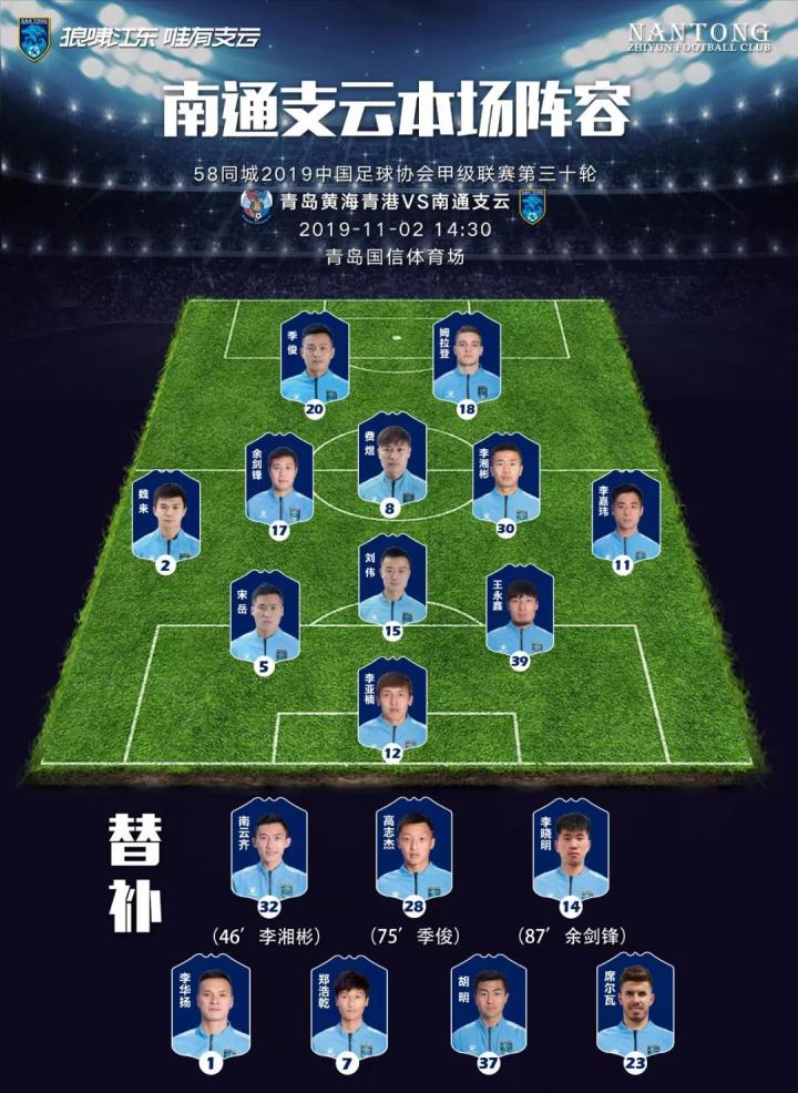 11月2日本周六下午,2019赛季中甲联赛收官之战,南通支云在客场2-1逆转取胜青岛黄海青港,姆拉登为球队攻入两粒关键进球!支云凭借获胜3分,反超四川FC及新疆队,最终位列积分榜第12位,保级成功!留在了中甲!感谢所有人,2020赛季我们一起,携手再战斗!