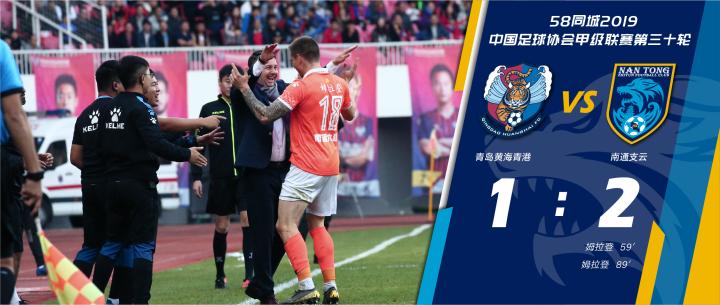 第89分钟,又是魔豆!支云队通过角球,魔豆门前鬼魅一击,头球破门!2-1!!!支云逆转比赛!!!全场比赛结束,南通支云在准中超球队青岛黄海的客场博得一场胜利!当然,我们也祝贺青岛黄海最终夺得2019中甲冠军。