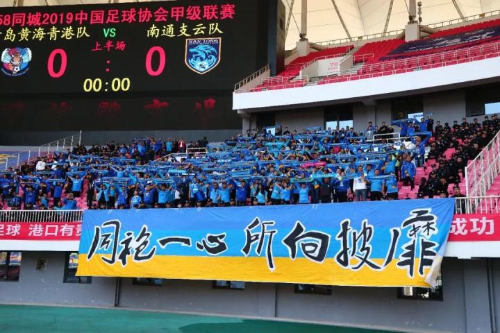 任何一支球队的远征军都是值得尊重的 恭喜南通 看见你们跟我们一起喊青岛的时候 挺感动的 谢谢 加油吧都