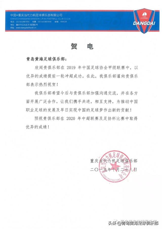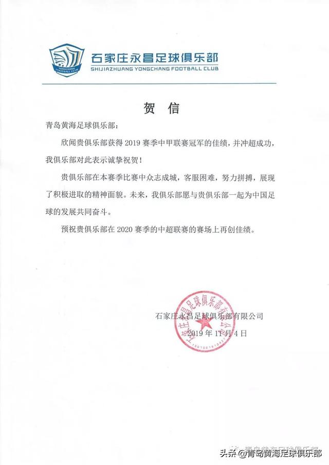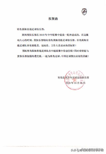 给别的俱乐部的贺信还有错别字