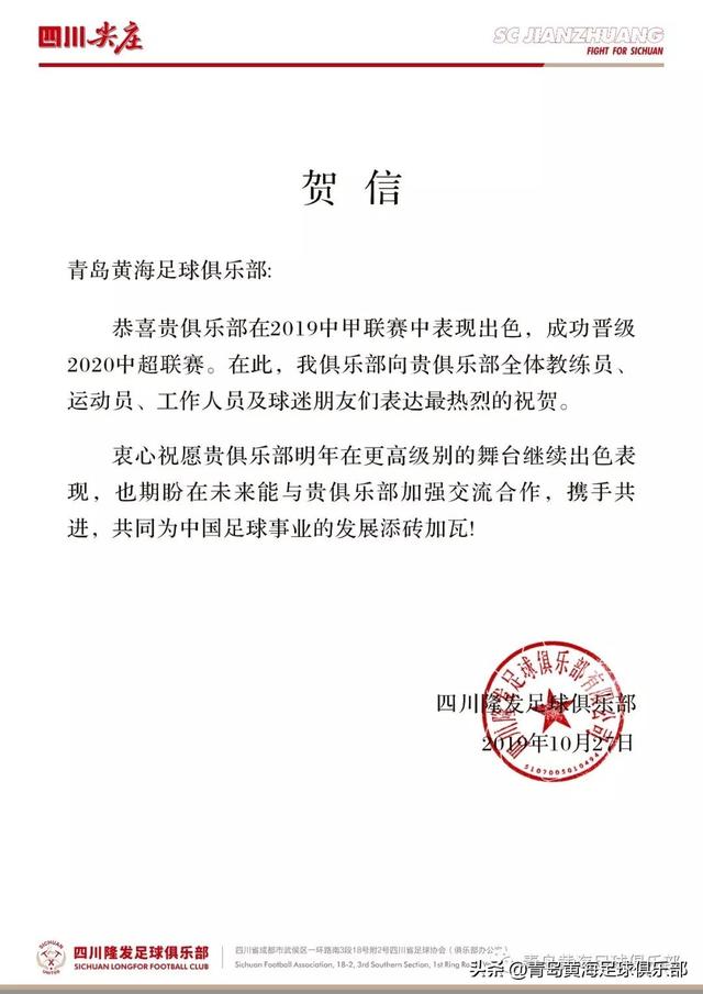 反观我小破昌,一点排面没有给别的俱乐部的贺信还有错别字