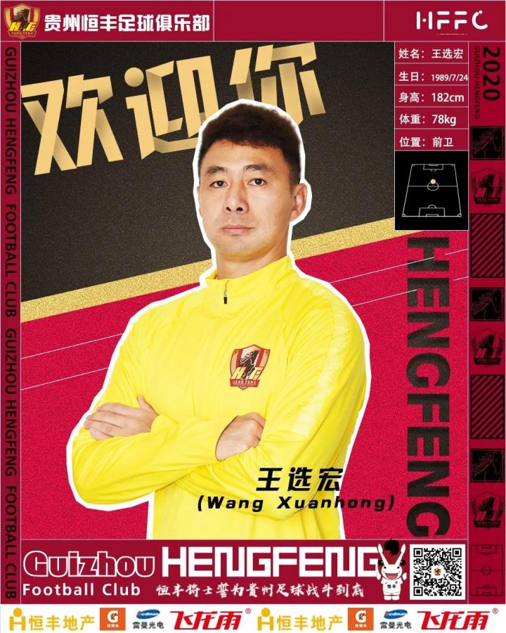 经与球员本人友好协商后达成一致,球员王选宏正式加盟贵州恒丰足球俱乐部。
