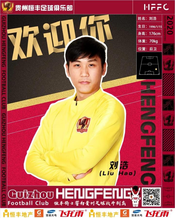 经与球员本人友好协商后达成一致,球员刘浩正式加盟贵州恒丰足球俱乐部。