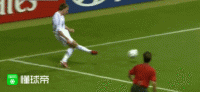 第27分钟,齐达内远距离任意球直接攻门高出横梁。