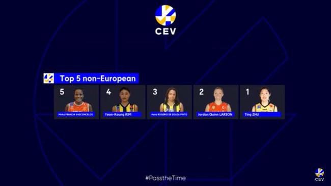 榜单的第二名是朱婷的老对手伊萨奇巴希的拉尔森,第三名弗法奥,第四名是在费内巴切有不俗成就的韩国球员金软景,第五名同样是来自费内巴切的弗兰西亚。