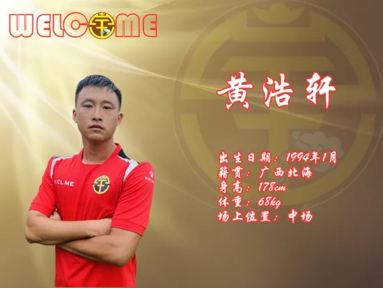 黄浩轩,1994年出生于广西北海,身高178cm,体重66kg,场上位置中场。原拉萨城投球员,曾效力过中甲广东日之泉、中超广州富力等队,入选2010年U17国少队。善于持球突破,任意球脚法出色,传球穿透力强。