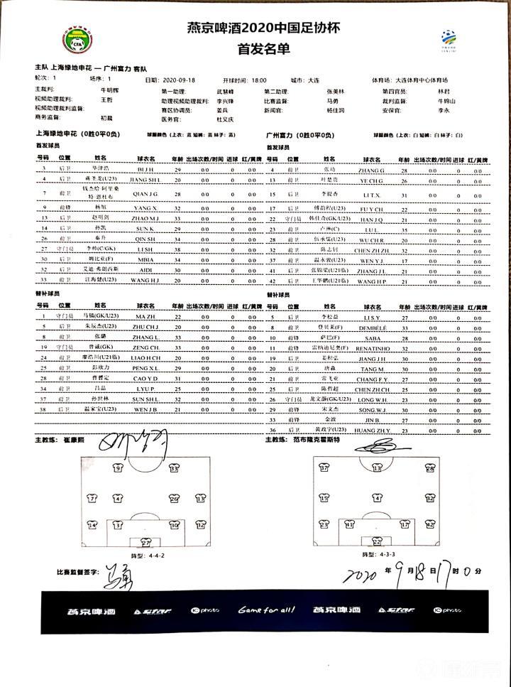 扫描下载懂球帝首页>动态> 懂球号> 2020中国足协杯第一轮 上海绿地申花vs广州富...
