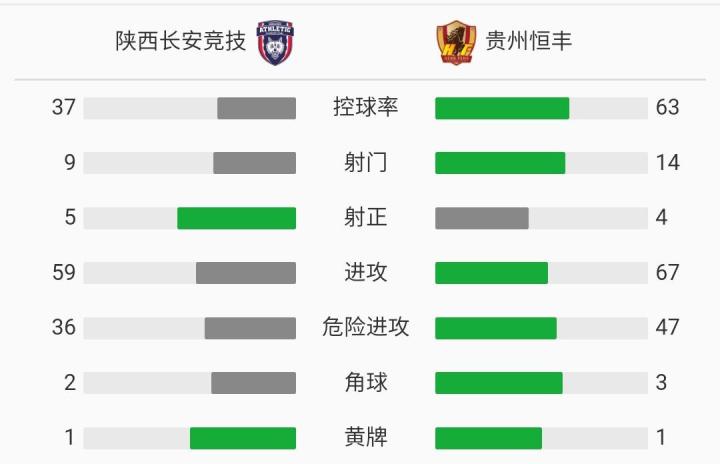 第59分钟,贵州后场失误,杨贺扳平比分。陕西1-1贵州。