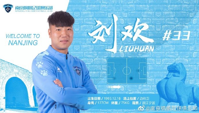 刘欢,1993年12月28日出生,籍贯浙江,2015-2018年效力于苏州东吴,表现突出,曾在2017年足协杯八进四对战中超豪门上海上港的点球大战中打进关键两球。2019年转会南京沙叶,首秀便为球队打入乙级联赛的第一粒进球,帮助球队取得了胜利。司职边前卫的刘欢,意识出众,传射俱佳,把握机会能力强,往往在关键时刻给予对手致命一击。