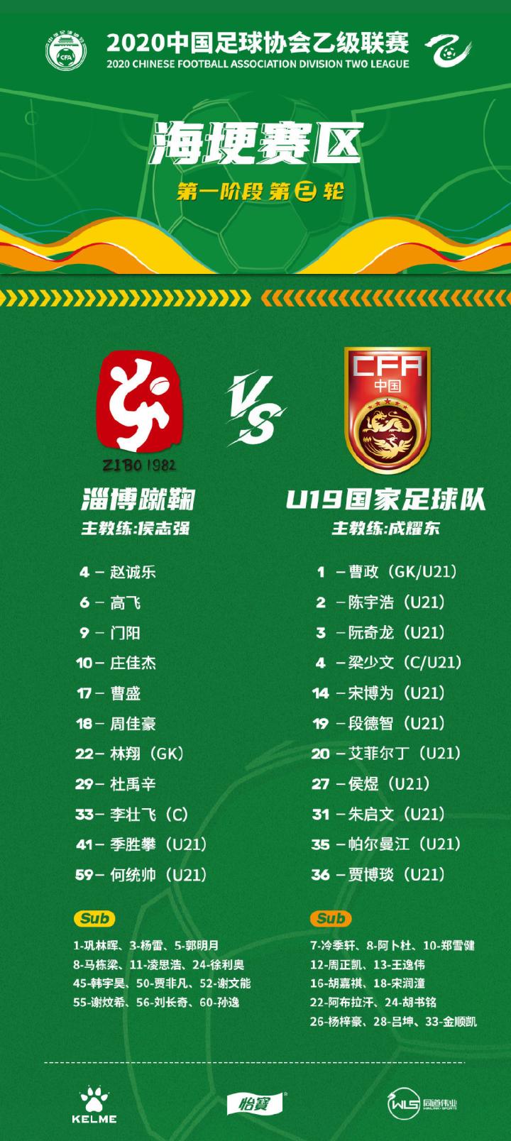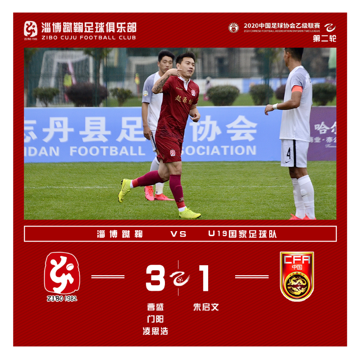 10月29日下午,2020赛季中乙联赛第一阶段第二轮比赛继续进行。在海埂训练基地,淄博蹴鞠与U19国家足球队展开较量。本场比赛淄博蹴鞠凭借曹盛、门阳、凌思浩的进球,最终3-1战胜U19国家足球队。