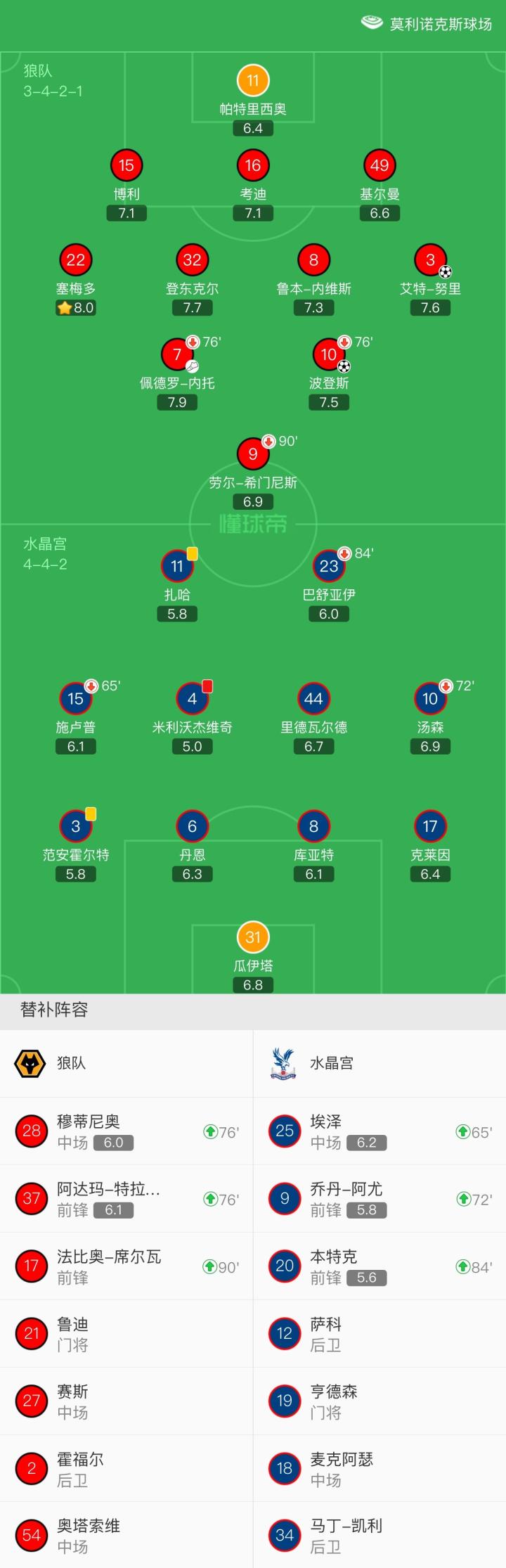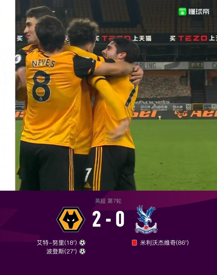扫描下载懂球帝首页>动态> 狼队2-0水晶宫,艾特-努里英超首秀破门、波登斯推射建功