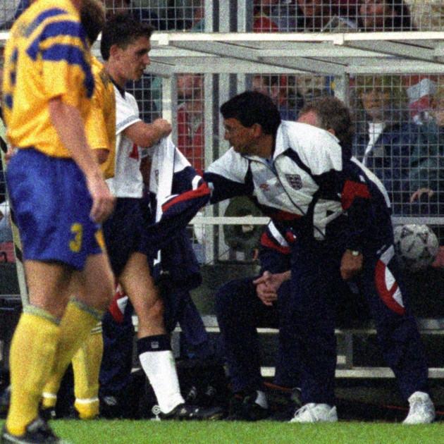 在以队长身份参加的1992年欧洲杯上,与瑞典僵持不下的英格兰却意外换下了莱因克尔,不但错过了超越博比·查尔顿的国家队进球纪录,还不情愿地目睹了瑞典人胜利狂欢的样子。