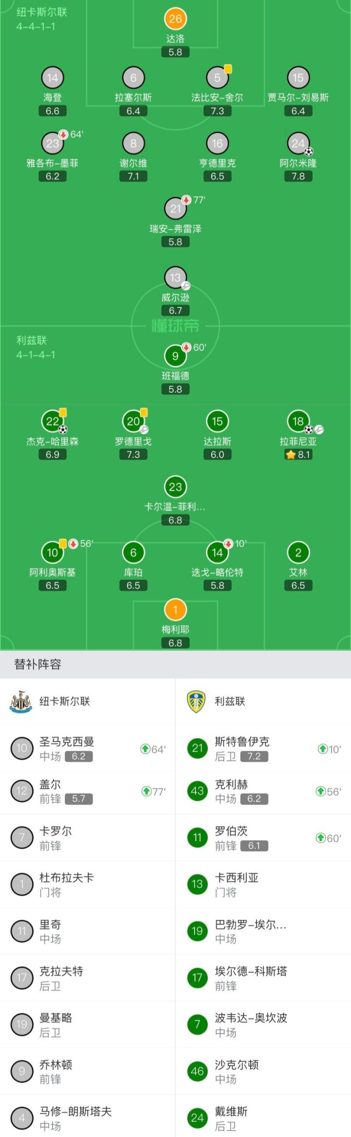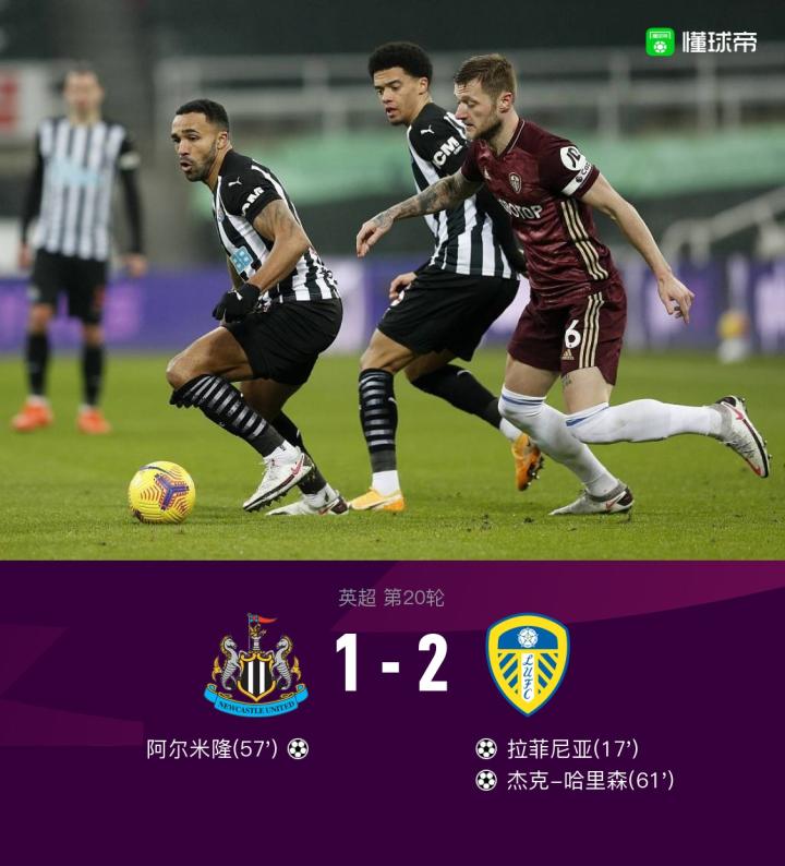 扫描下载懂球帝首页>动态> 纽卡1-2利兹联遭联赛九轮不胜,拉菲尼亚传射,阿尔米隆破门