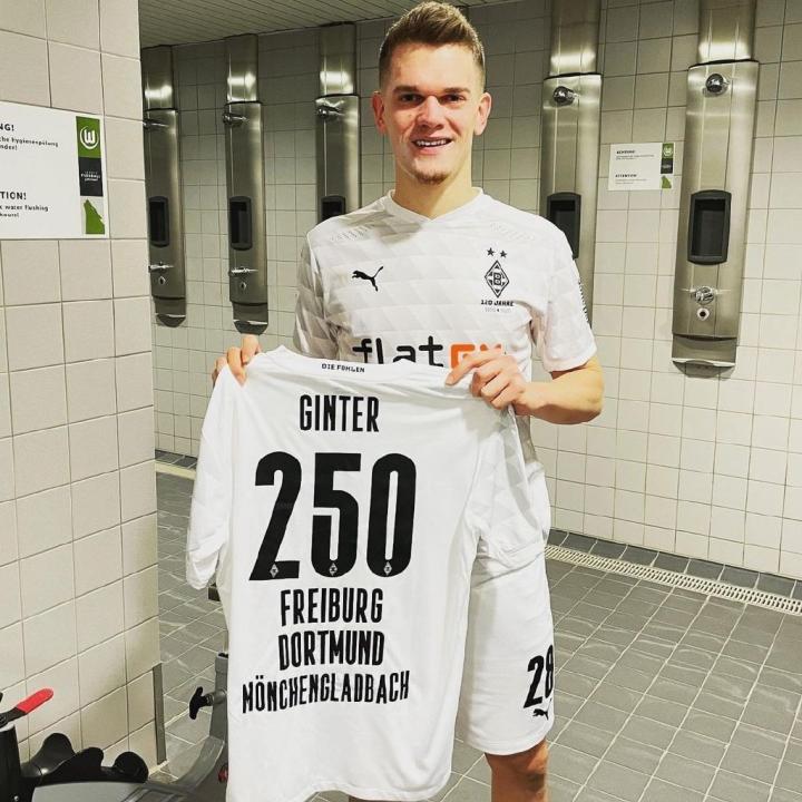 这场比赛是金特尔在德甲出战的第250场比赛,此前他曾效力于弗赖堡(德甲出战70场)、多特蒙德(德甲出战67场),2017年夏天他从多特转会至门兴,稳坐球队主力,并代表门兴在德甲出战了113场比赛。
