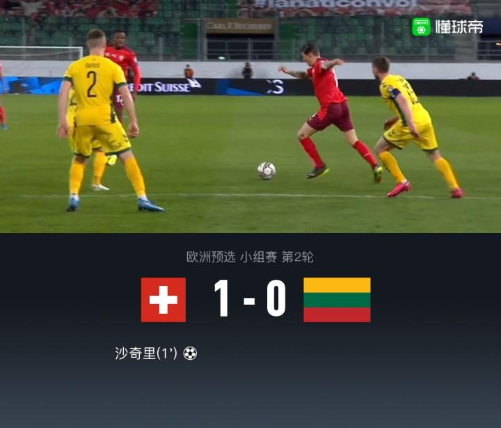 第1分钟,立陶宛后场传球失误,恩博洛断球直塞,沙奇里右侧抽射破门!瑞士1-0!