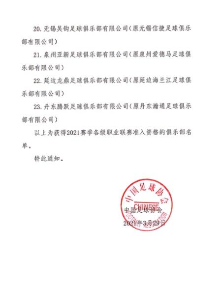扫描下载懂球帝首页>动态> 中乙准入公布:深圳壆岗、盐城无缘,中冠延边升级