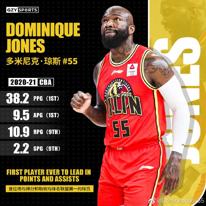 本赛季CBA常规赛全部结束。各项数据出炉,其中吉林外援琼斯成为最大赢家,荣获得分王和助攻王。