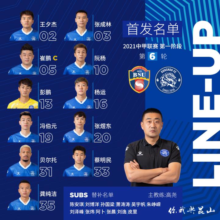 2021年5月20日,2021中国足球协会甲级联赛第一阶段第6轮,昆山队在大连足球青训基地体育场对阵北京北体大。