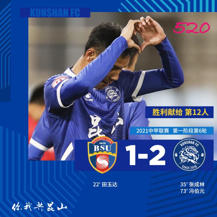 在对手先进一球的情况下,张成林用一脚精彩的世界波帮助球队扳平比分,冯伯元下半场破门反超比分。最终,昆山队2-1逆转击败北京北体大,收获联赛3连胜。胜利献给第12人,最好的结果回馈最好的你们,520!