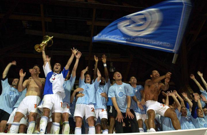 进入21世纪后,草蜢虽然经历了一个不错的新世纪开局,在2001年和2003年两度收获联赛冠军,但是2003年也是草蜢迄今最后一次染指联赛冠军(图1)。此后将近20年的时间里,草蜢只在2013年获得过一次瑞士杯冠军(图2)。