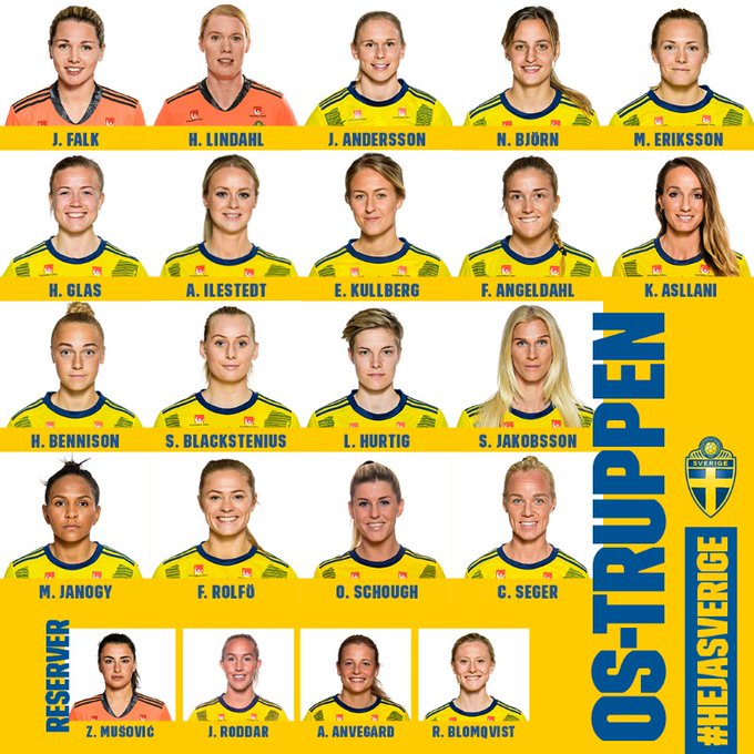 瑞典女足国家队主教练彼得-耶哈德松近日公布了参加东京奥运会女足比赛的22人大名单(18名队员+4名候补球员),老队长塞格领衔,球队与美国女足、澳大利亚女足、新西兰女足同组。