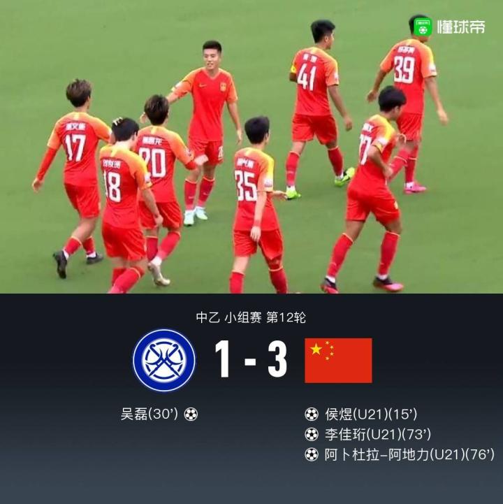 北京时间7月17日15:30,中乙联赛小组赛第12轮继续进行,U20国青对阵无锡吴钩。上半场,U20国青前场打出精妙配合,易县龙助攻侯煜包抄打空门首开记录;随后吴磊抓住U20国青后场失误劲射破门扳平比分。下半场,李佳珩内切世界波建功,16岁小将阿卜杜拉-阿地力冷静低射锁定胜局。最终,U20国青3-1击败无锡吴钩,终结五轮不胜。