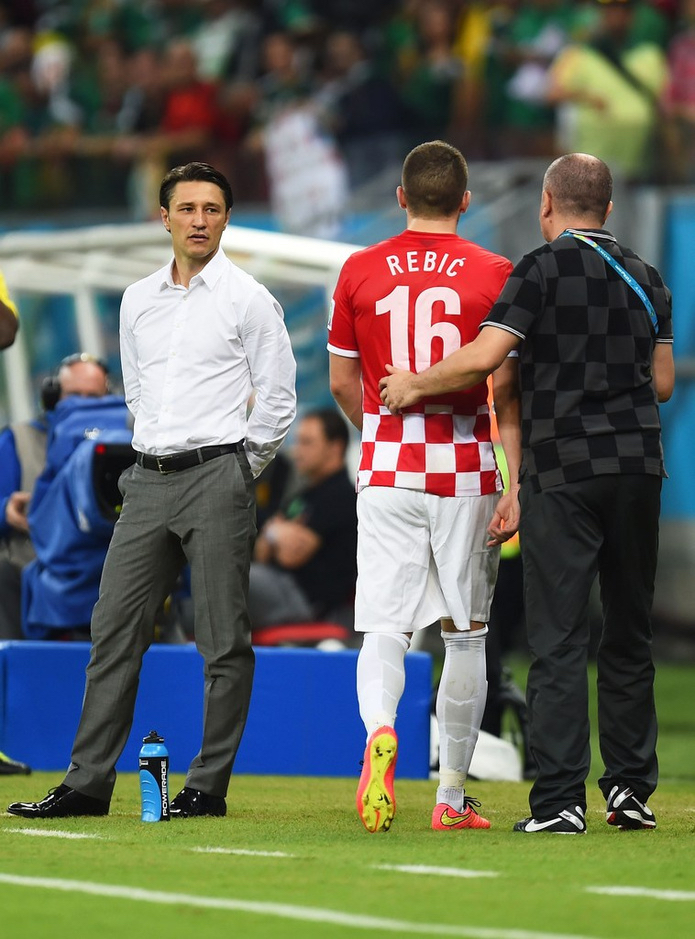 然而,初登亚平宁的雷比奇虽然踌躇满志,对紫百合的主力位置虎视眈眈。但他毕竟是一只尚待历练的小虎,来到意甲联赛这样的顶级斗兽场中,他表现出的实力还不足以说服时任教练蒙特拉。小飞机的球队没有给雷比奇太多机会,一年的时光雷比奇仅出场5次,打进两粒进球,之后便被俱乐部租借给出手阔绰的莱比锡红牛。但14年的雷比奇无疑是幸运的,他被蒙特拉的冷酷冰冻的心,在科瓦奇那里得到慰藉——尽管在俱乐部表现不佳,但时任克罗地亚主帅的科瓦奇还是因为过去两人愉快的合作经历和对雷比奇实力及特点的了解,将这位小将选进征战巴西的大名单中。雷比奇的夏天,因为科瓦奇和《We Are One》的旋律而火热。也许很多人认为随队前往巴西的雷比奇不过是感受世界杯气氛,下一届世界杯才是属于他的舞台。然而科瓦奇并不这么认为,在对战东道主巴西的揭幕战就让雷比奇替补出场,踏上科林蒂安竞技场的雷比奇尽情享受着世界足球最高舞台的气氛,感受着与世界顶级球队对战的紧张感,也珍惜着恩师科瓦奇赐予的机会。也许是雷比奇的特点为科瓦奇看重,也许是科瓦奇确实对雷比奇有所偏爱,世界杯的三场小组赛他都给了雷比奇替补登场的机会,尤其是最后一轮对阵墨西哥的生死战中,科瓦奇更是在69分钟就用雷比奇换下奥利奇。出线的压力、咄咄逼人的墨西哥人、0-0僵持的比分,伯南布哥竞技场炎热潮湿的空气让雷比奇窒息。上场后不久,他就在一次角球的防守中迷失,放任身前的马克斯无人盯防将球顶进球门。随后,克罗地亚的防守越加混乱,墨西哥人乘势打进第二球、第三球,将出线主动权几乎攥在手里。虽然渺茫的希望没有击垮坚韧的克罗地亚人,但却让不想辜负科瓦奇信任的雷比奇更加急于表现以求戴罪立功。本就性如烈火的他此刻更加焦急,空气中仿佛氢气含量超标,在比赛第88分钟终于爆燃——雷比奇将球带入禁区后被结尾,而他却控制不住情绪没有收脚,踏在了防守队员的小腿上,主裁判当即出示红牌将他罚下。雷比奇的红牌是大势已去的克罗地亚的缩影,镜头给到科瓦奇,仿佛质问他为什么选择这名在俱乐部没什么机会的新兵。科瓦奇没有答案,俊朗的脸上没有一丝表情;雷比奇没有解释,克罗地亚出局后他成为了媒体和球迷的主要抨击对象。