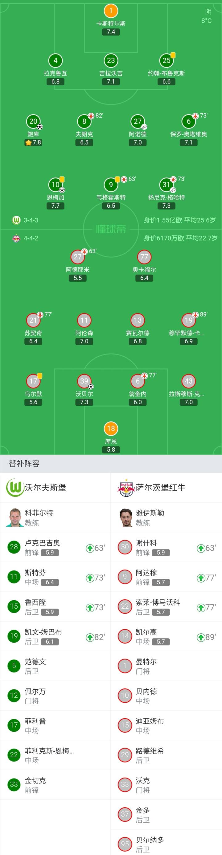 扫描下载懂球帝首页>动态> 狼堡2-1萨尔茨堡红牛迎小组赛首胜,恩梅加制胜,鲍库闪击