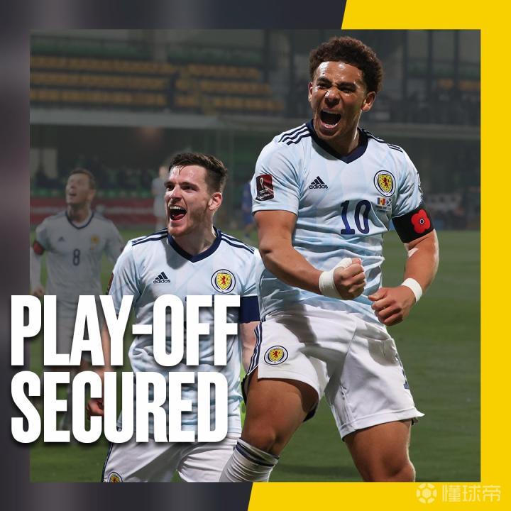 2-0击败摩尔多瓦后,苏格兰9轮战罢积20分,领先身后的以色列7分,提前锁定小组第二,晋级欧洲区世预赛附加赛。