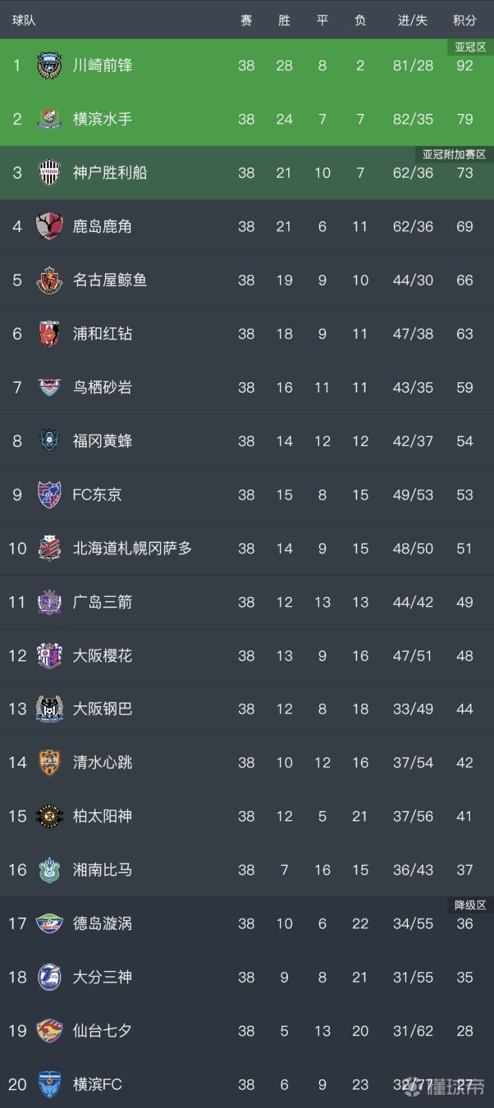 鹿岛鹿角虽然和去年一样都经历了糟糕的开局,但是没有再像去年最后一轮掉链子,最终还是保持住了前四。接下来鹿岛将期盼川崎夺得天皇杯,那样就可以参加亚冠。而虎头蛇尾的名古屋鲸鱼则三大皆空,只能以一个日联杯冠军结束本赛季。