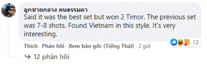 “虽然100%投入,但和东帝汶踢比赛只攻入2球... 之前都是进7-8个球的,看看越南是怎么踢球的,多应该向他们学习,只有这样才能更加吸引人。”