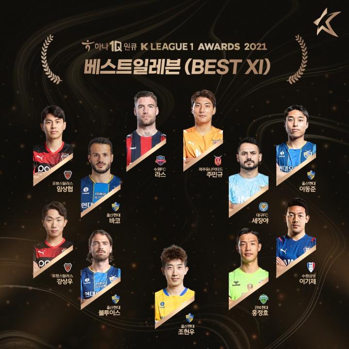 在2021赛季结束后,K联赛官方公布了赛季最佳阵容,其中蔚山现代四人入选,中超旧将洪正好在列。