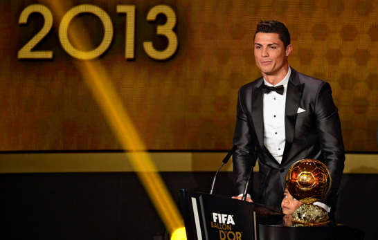 2014年1月14日,金球奖典礼上,俱乐部荣誉上四大皆空的C罗逆转五冠王里贝里和个人数据耀眼且拥有西甲冠军的梅西赢得2013年FIFA Ballon D’or (FIFA金球奖)。台上,激动的C罗难掩泪水;台下,他和布拉特也终于和解,一笑泯恩仇。