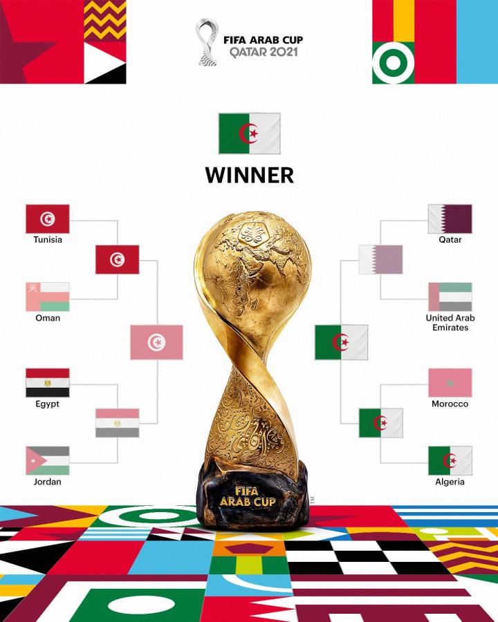 首届由国际足联组织的阿拉伯杯落下帷幕,阿尔及利亚首次捧杯,突尼斯亚军,东道主卡塔尔获得季军,另外赛事的各个奖项也已出炉: