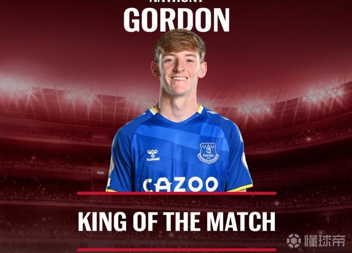 扫描下载懂球帝首页>动态> 传射建功,埃弗顿小将戈登当选与利兹联一役英超官方最佳球员