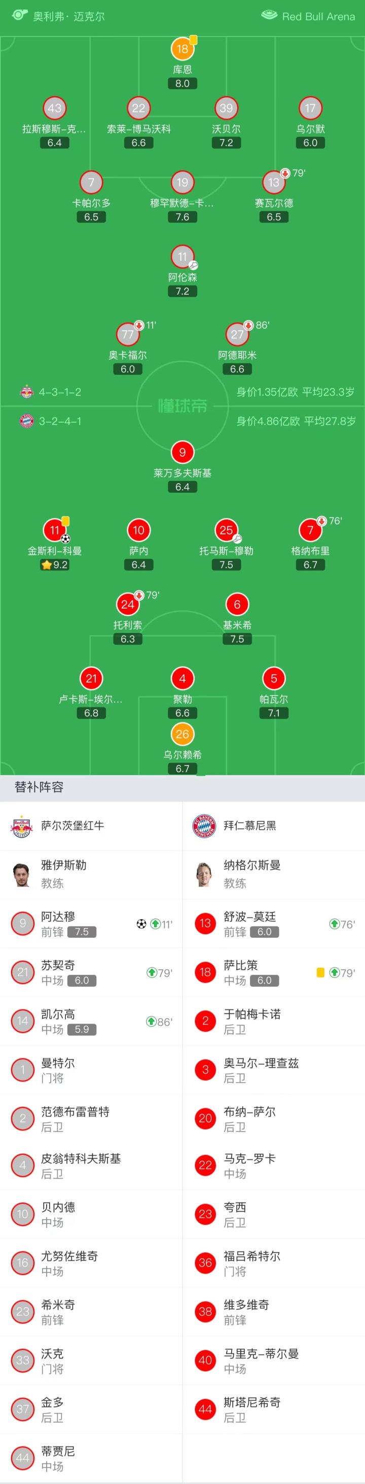 这教练水平侥幸过了萨尔茨堡 到八强碰强队也就跪了 该研究换帅了 下半场就靠科曼个人能力再踢