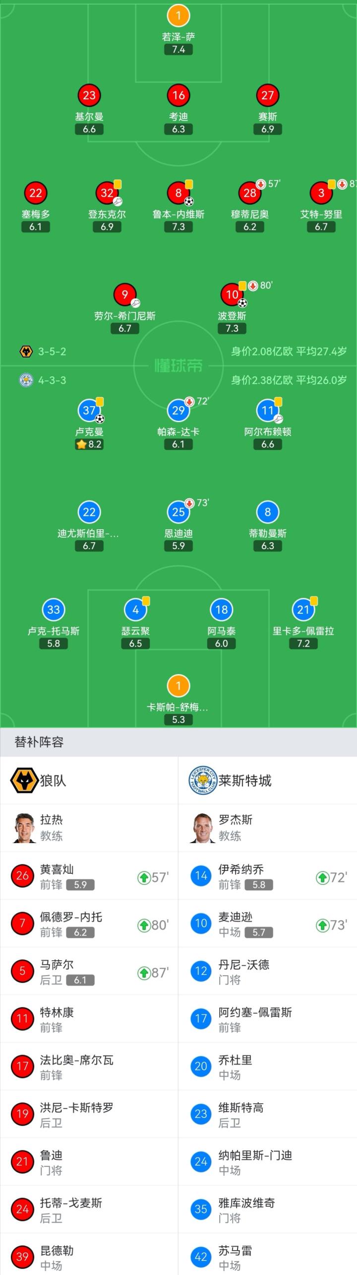 唉,只能说运气真的不在我狐这边吧,这场真的是这赛季踢的最好看的一场比赛了,可惜真的就是脚风不顺,被俩远射打俩进球,最后能看出来一周两赛真的体能都到极限了,看到狼队的内托登场还是打心底里开心的,开心之余,啥时候才能看到全员狐啊