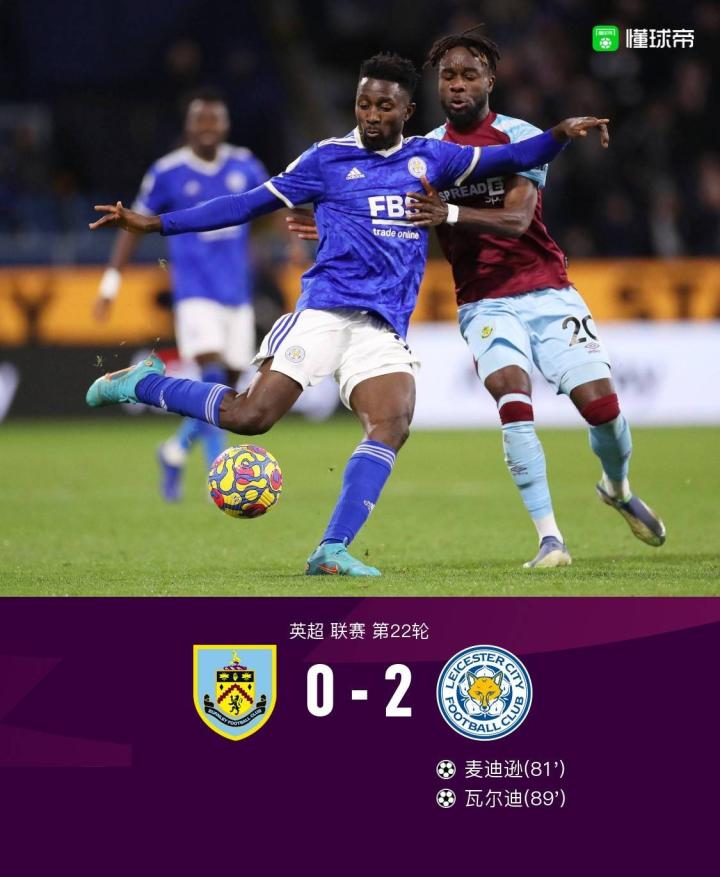 扫描下载懂球帝首页>动态> 莱斯特城客场2-0伯恩利,麦迪逊破门,瓦尔迪复出传射建功