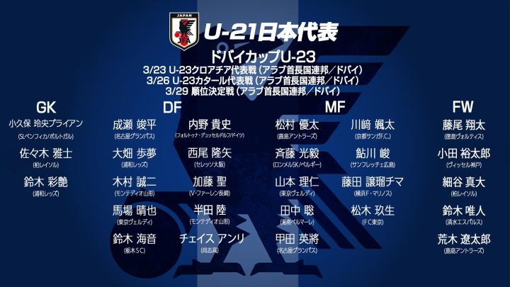 扫描下载懂球帝首页>动态> 日本足协公布U21国家队征战迪拜杯大名单,三名海外球员入选