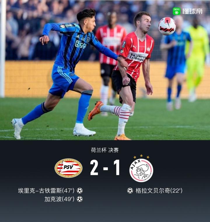 扫描下载懂球帝首页>动态> 埃因霍温2-1逆转阿贾克斯夺荷兰杯冠军,加克波远射制胜