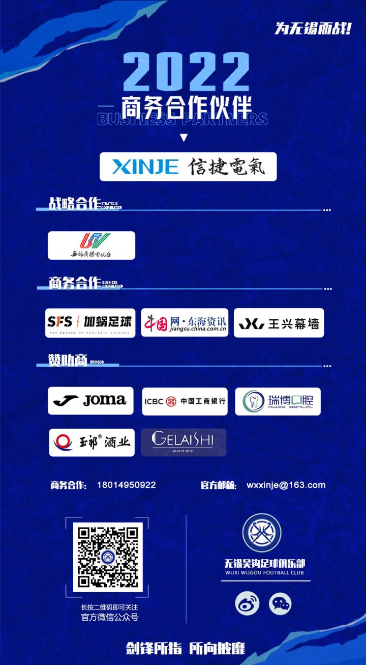 扫描下载懂球帝首页>动态> 懂球号> 官宣 | 无锡吴钩足球俱乐部续约公告