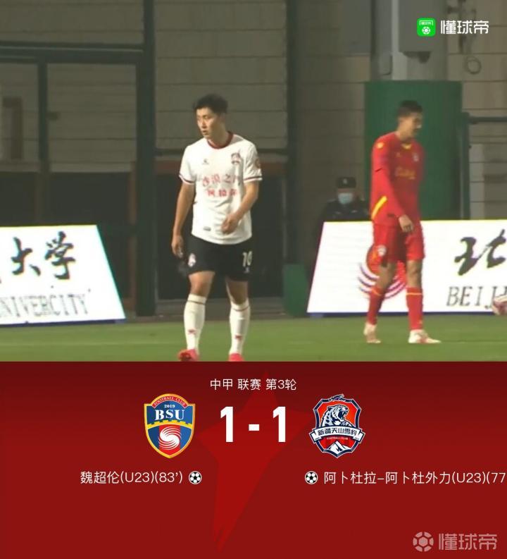 扫描下载懂球帝首页>动态> 北体大1-1新疆,阿卜杜拉破门,魏超伦折射扳平