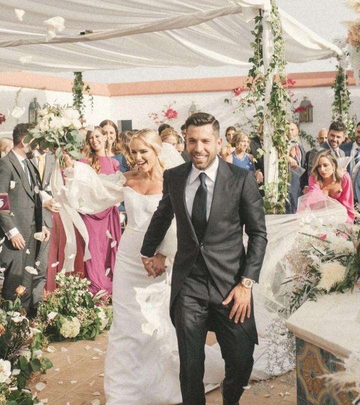 扫描下载懂球帝首页>动态> 完成人生大事,阿尔巴晒结婚照示爱妻子:你是世上最美的女人