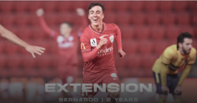 阿德莱德联俱乐部宣布,已经与年轻前锋贝尔纳多-奥利韦拉续约,直到2025年6月30日。