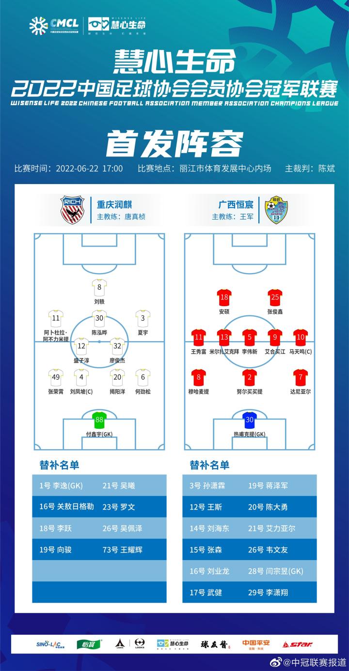 6月22日17时,丽江市体育发展中心内场,中冠B组第三轮,广西恒宸对阵重庆润麒,首轮广西恒宸1-0击败玉溪玉昆钢铁占据出线主动,重庆润麒则大比分不敌玉溪玉昆钢铁,出线形势岌岌可危。