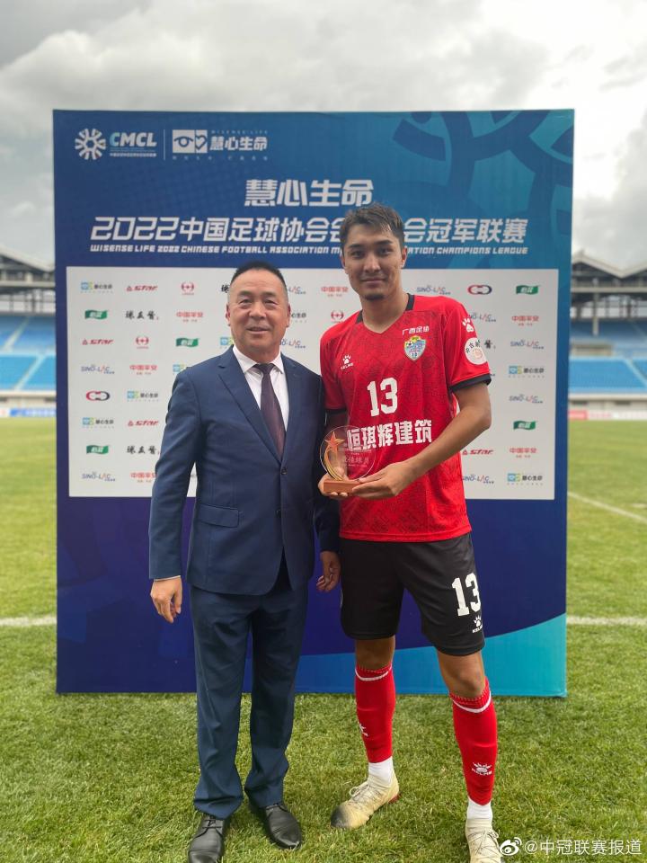 (梅开二度的米尔扎艾克拜当选本场比赛的最佳球员)