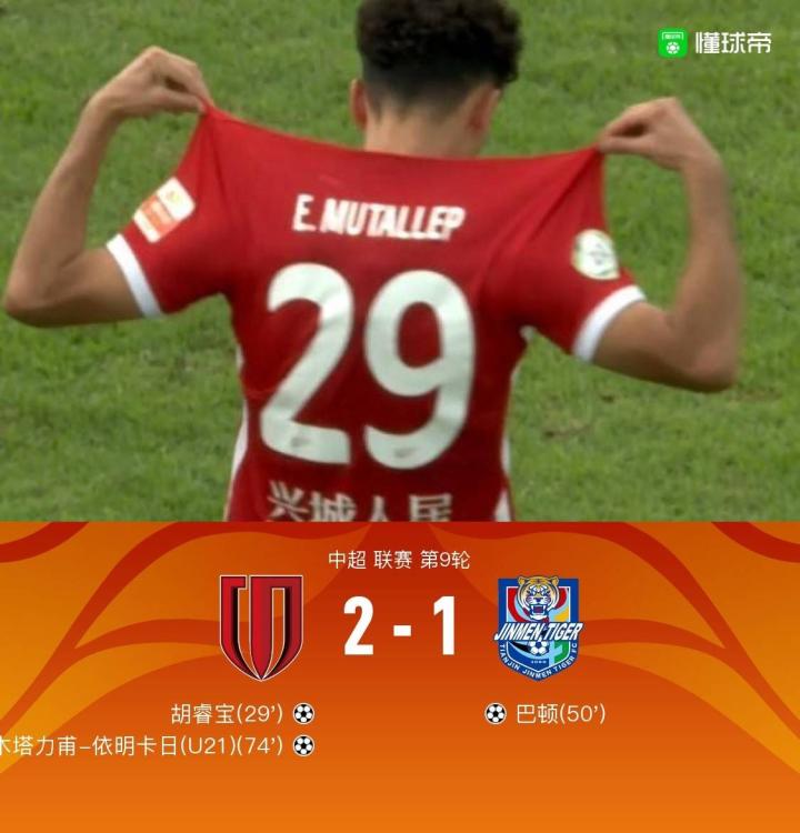 第74分钟,18岁小将木塔力甫右路衔枚疾走内切拔脚怒射折射入网,斩获处子球,成都2-1再度领先!
