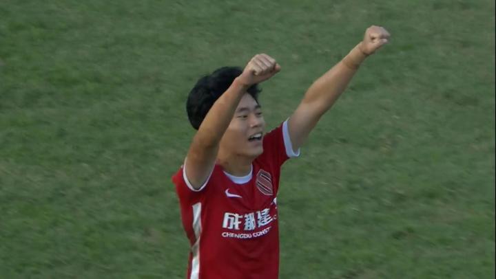 第81分钟,成都蓉城后防大将理查德将球吊到前场,孟俊杰、胡荷韬俩人一左一右压迫,导致梅州客家的后防球员解围失误,皮球直接落到了胡荷韬的头顶,胡荷韬没有浪费这来之不易的机会,一记鱼跃冲顶将皮球顶进梅州客家的球门,成都蓉城将场上比分扳成1:1平。