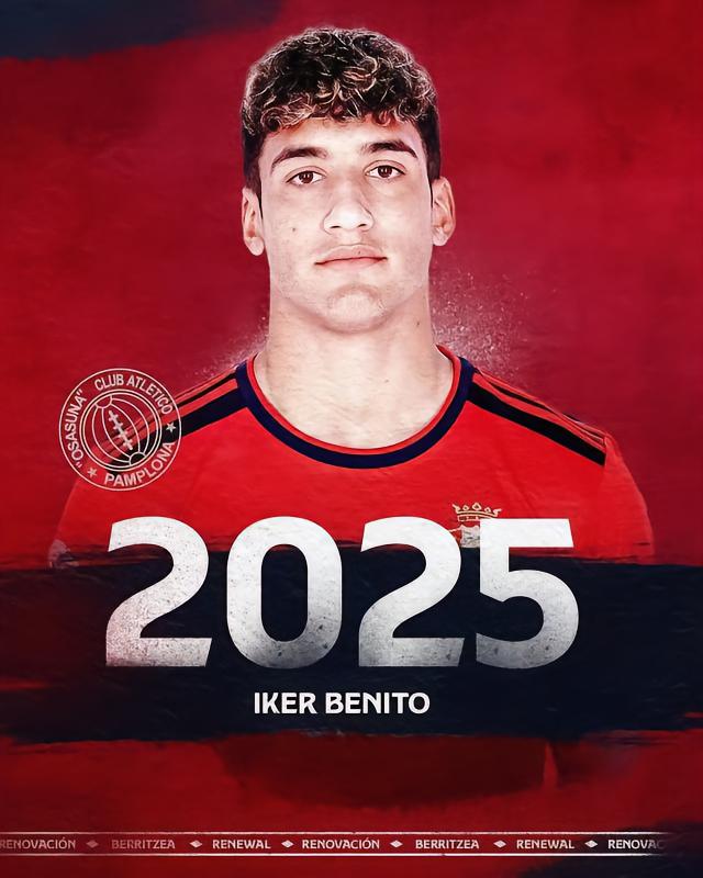 奥萨苏纳官方宣布,与球队小将贝尼托续约至2025年。