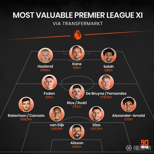 扫描下载懂球帝首页>动态> 懂球号> 壕无人性!90MIN评选出的最贵英超阵容,曼城-...